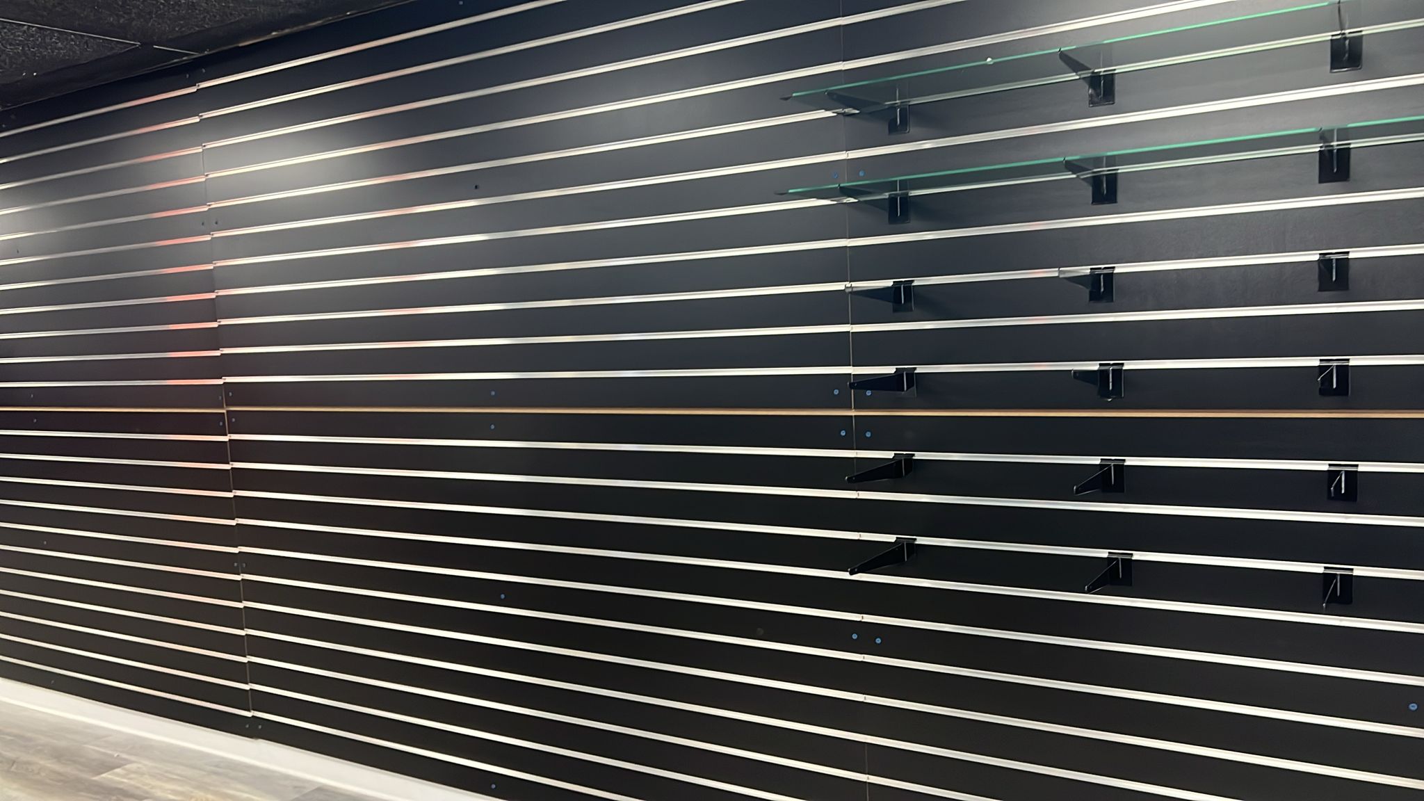 (Note* – It is cut into 2 parts for shipping and ships as 4ft x 4ft Slatwall)